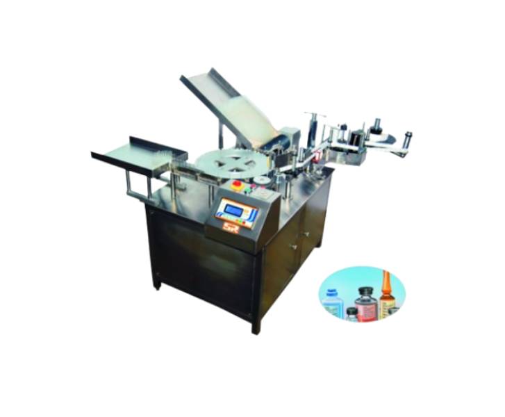 The Dhrom Packers Ampoule Sticker labeler Machine useful for offline printing application. Label counting and offline Label Application on Sticker label roll. The standard machine consists of Label roll Un-winding and Rewinding Unit with Variable Speed Controller. The machine counting with auto stop facility for Label Counting / Batch Coding Unit. .The Ampoule Rotary Labeler is the Compact flexible Design. It is capable of labeling round (including conical) Thin Diameter Ampoules / Test Tubes Pre-Fill Syringe. Labels can be partial or full wrap.